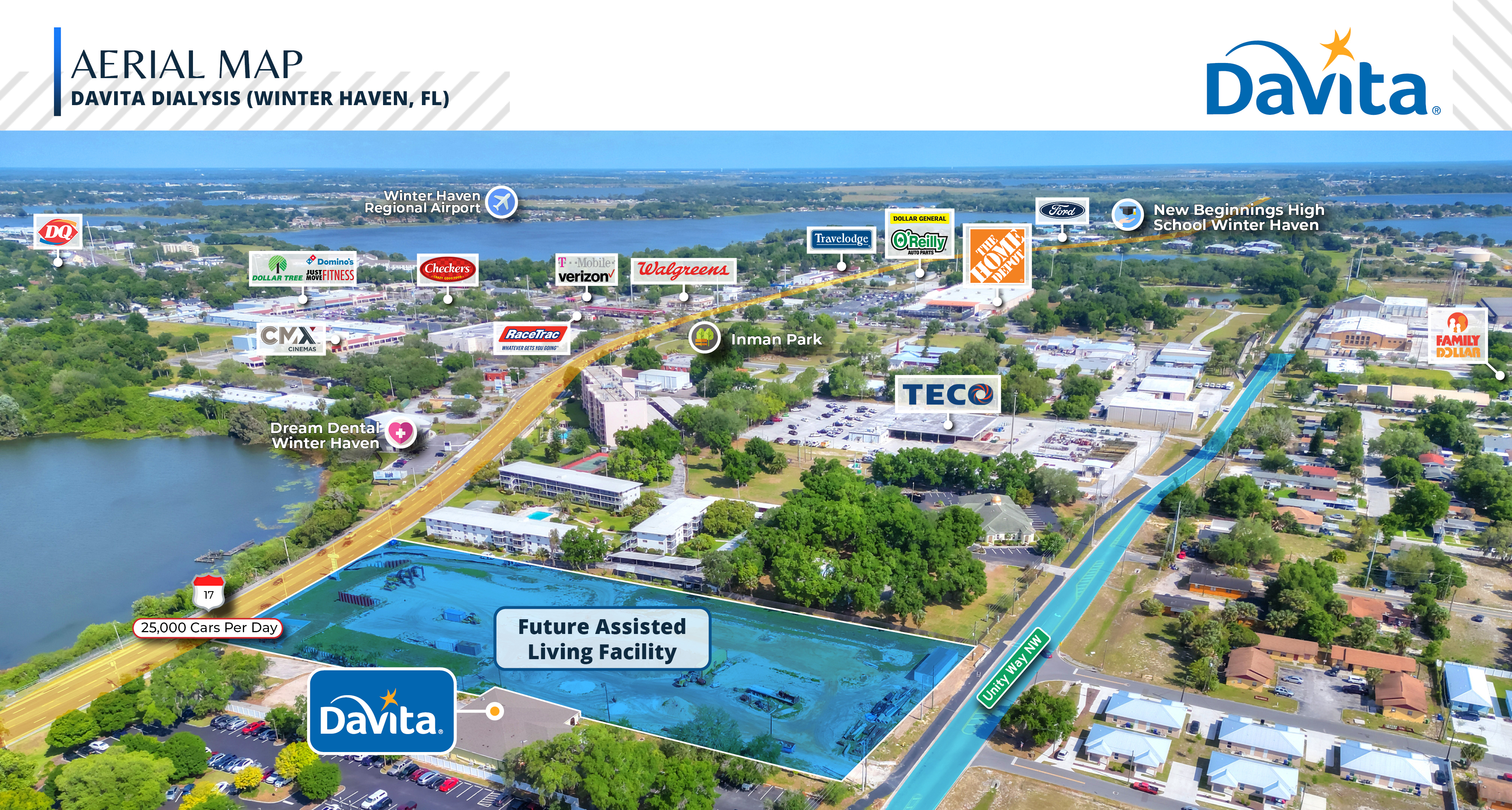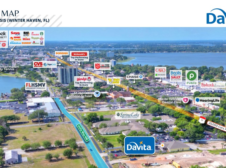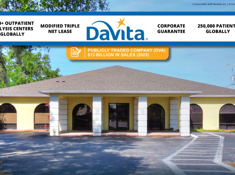 Lease is guaranteed by the corporate entity DaVita Inc. NYSE: DVA | Publicly traded backed lease allows for financial transparency along with enhanced credit for better lending options.