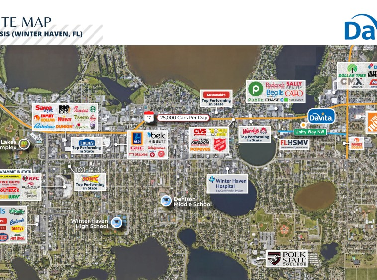 Nearby Winter Haven Hospital is a 527 bed facility and is the 4th largest private sector employer in Polk County with 2,5000 employees.