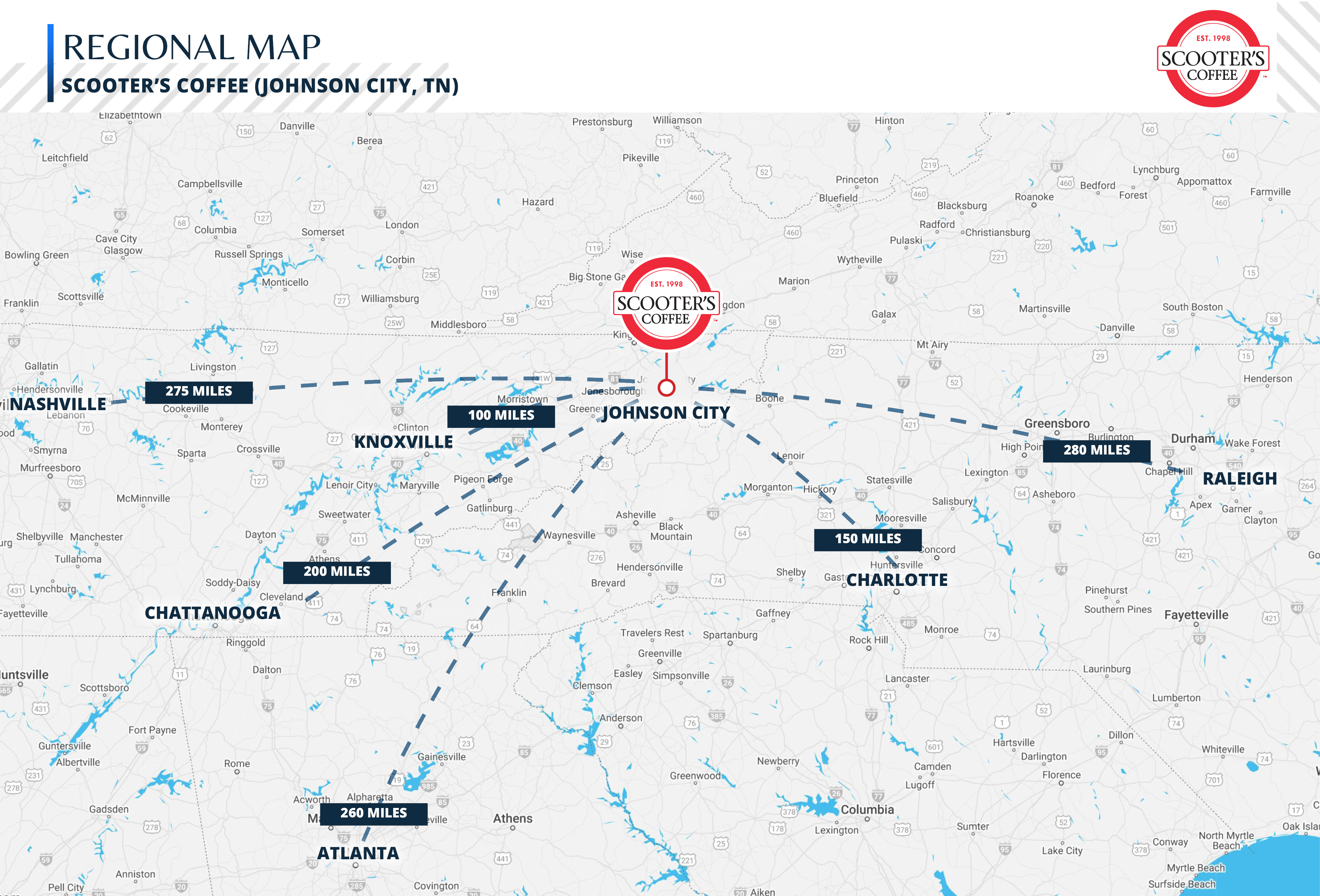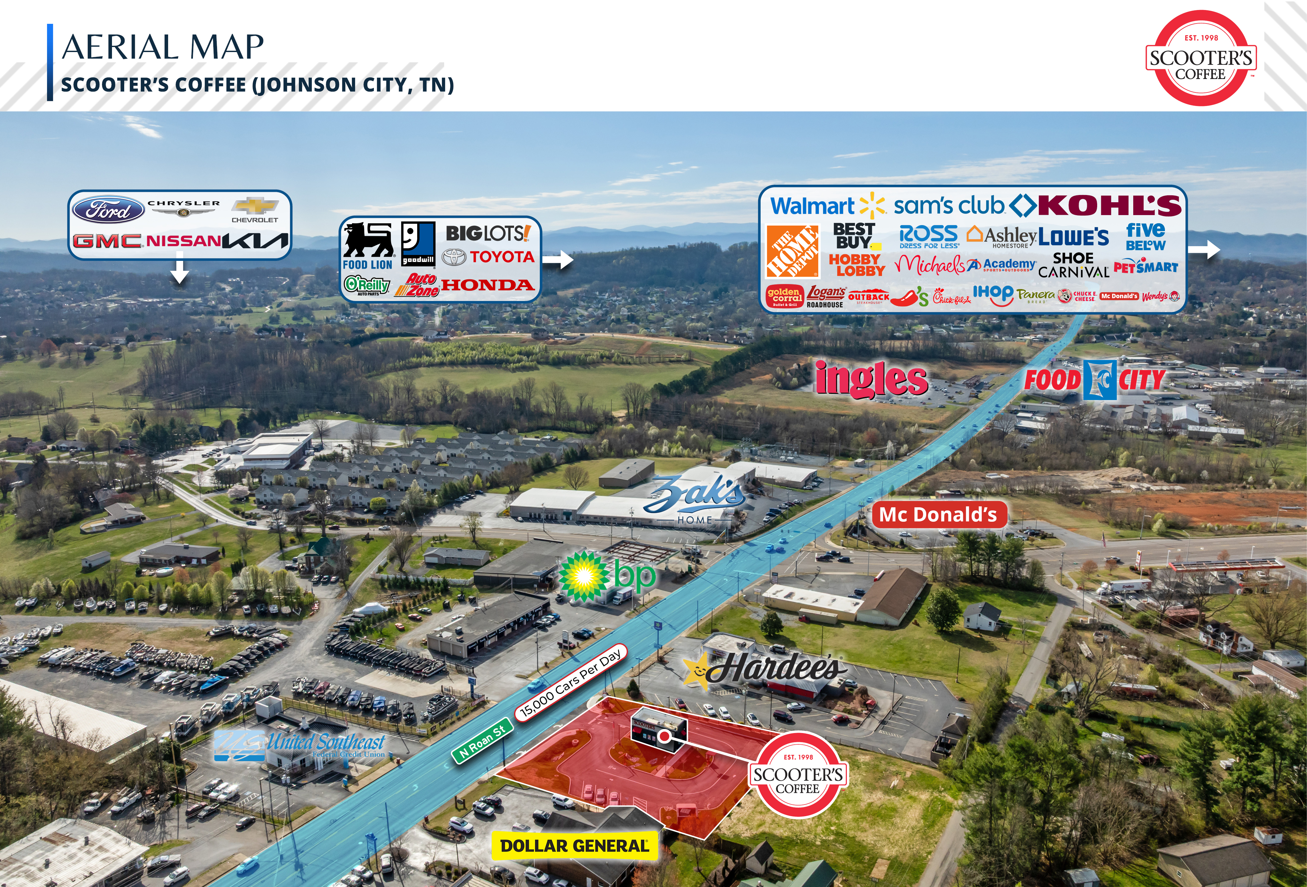 Situated in the Tri-Cities metro area (Johnson City, Kingsport, and Bristol), with a combined population of over 600,000 residents, providing access to a large and growing customer base.